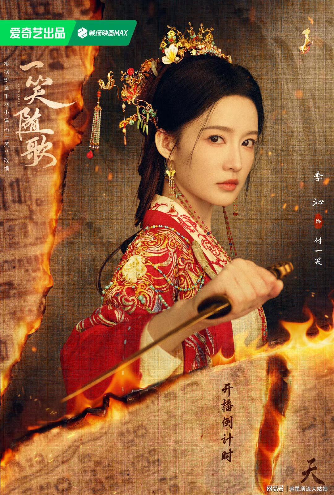 改编自炽翼千羽的小说《一笑》。剧将爱情、悬疑、权谋多种元素完美融合,李沁气质好适合这类美强惨角色,高马尾束袖劲装又美又飒,红衣战损妆破碎感和杀伐气无缝切换,眼神戏绝了。而陈哲远饰演的大皇子凤随歌,表面看似冷血如冰,内心却藏着“苍生何辜”的柔软,与付一笑从互相试探到携手同行,CP感爆棚 。