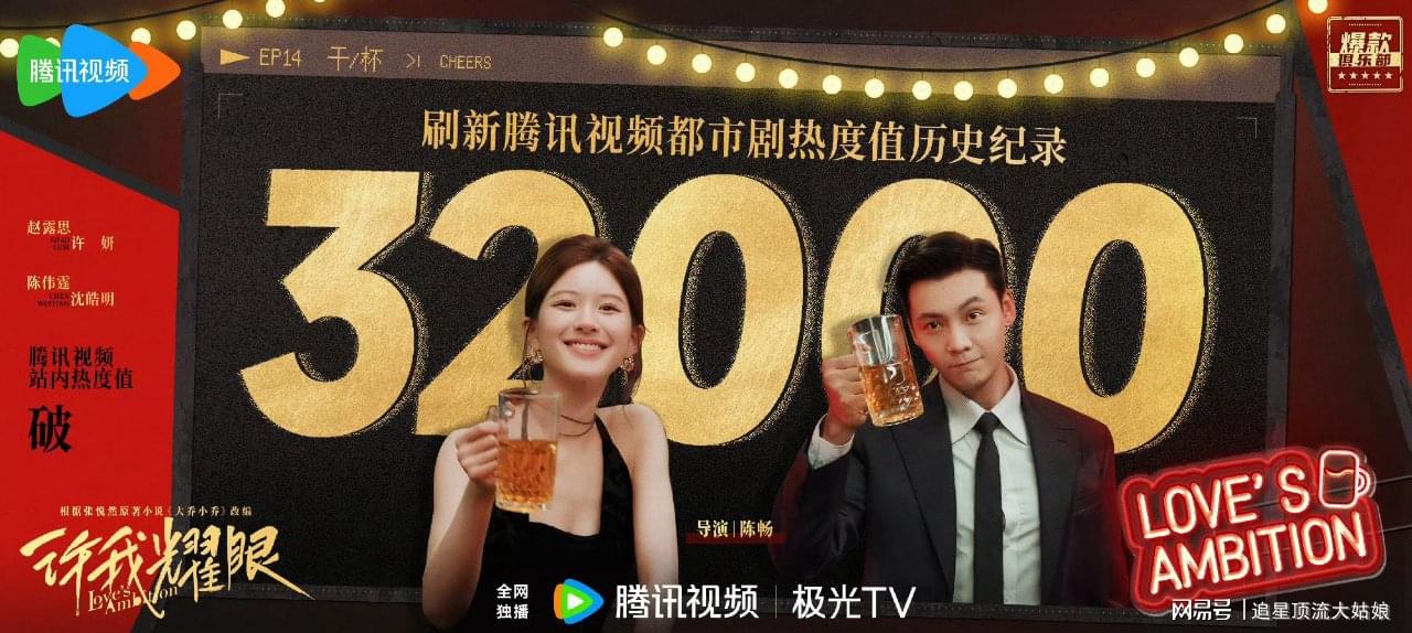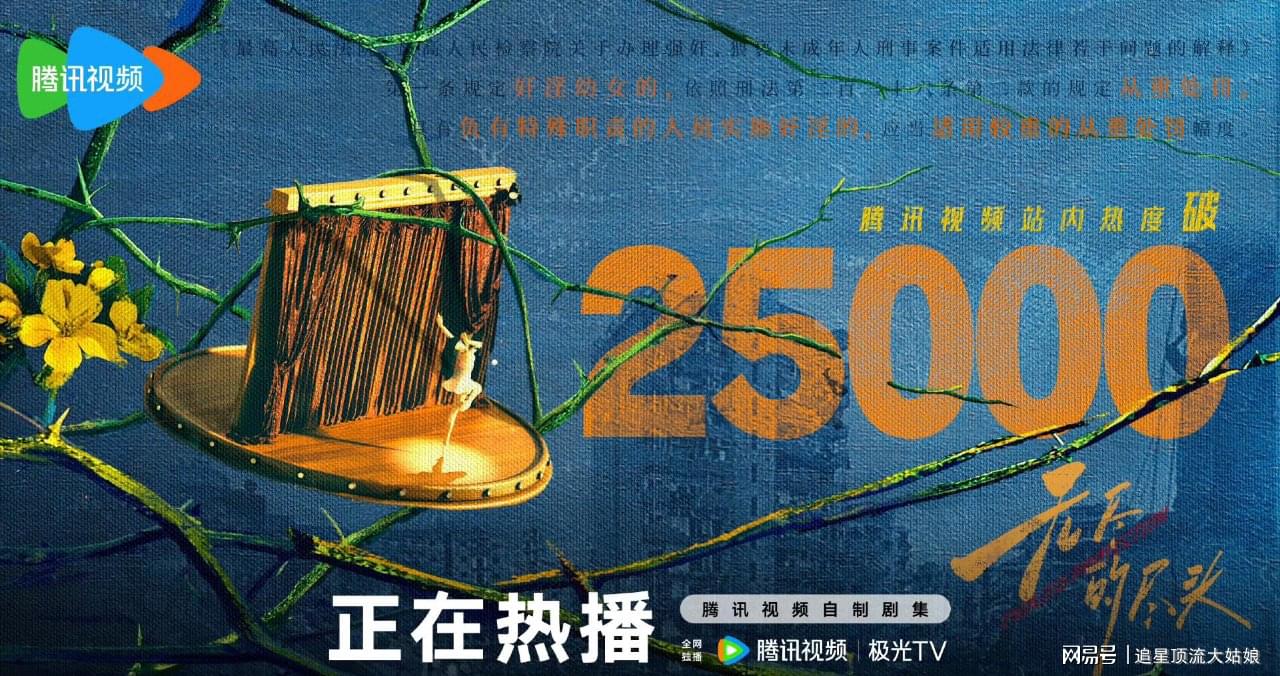 在无预热、非黄金档空降开播,开播4天腾讯站内热度值破30000,第7天破32000,云合市占率达41.7%,刷新腾讯都市剧历史峰值。全网累计播放量破3亿,微博话题阅读量破30亿,抖音话题播放量破200亿,登顶WeTV全球11国/地区热度榜。