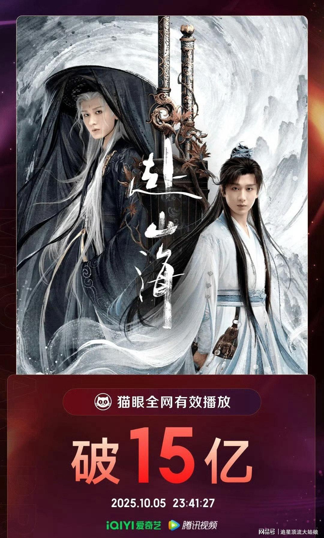 首播当日腾讯站内热度便突破26000,爱奇艺热度也达到8500+。猫眼热度峰值达9846.88,云合占比达27.3%,全网累计播放量破15亿,连续多日位列电视剧热搜榜、武侠剧榜TOP1。