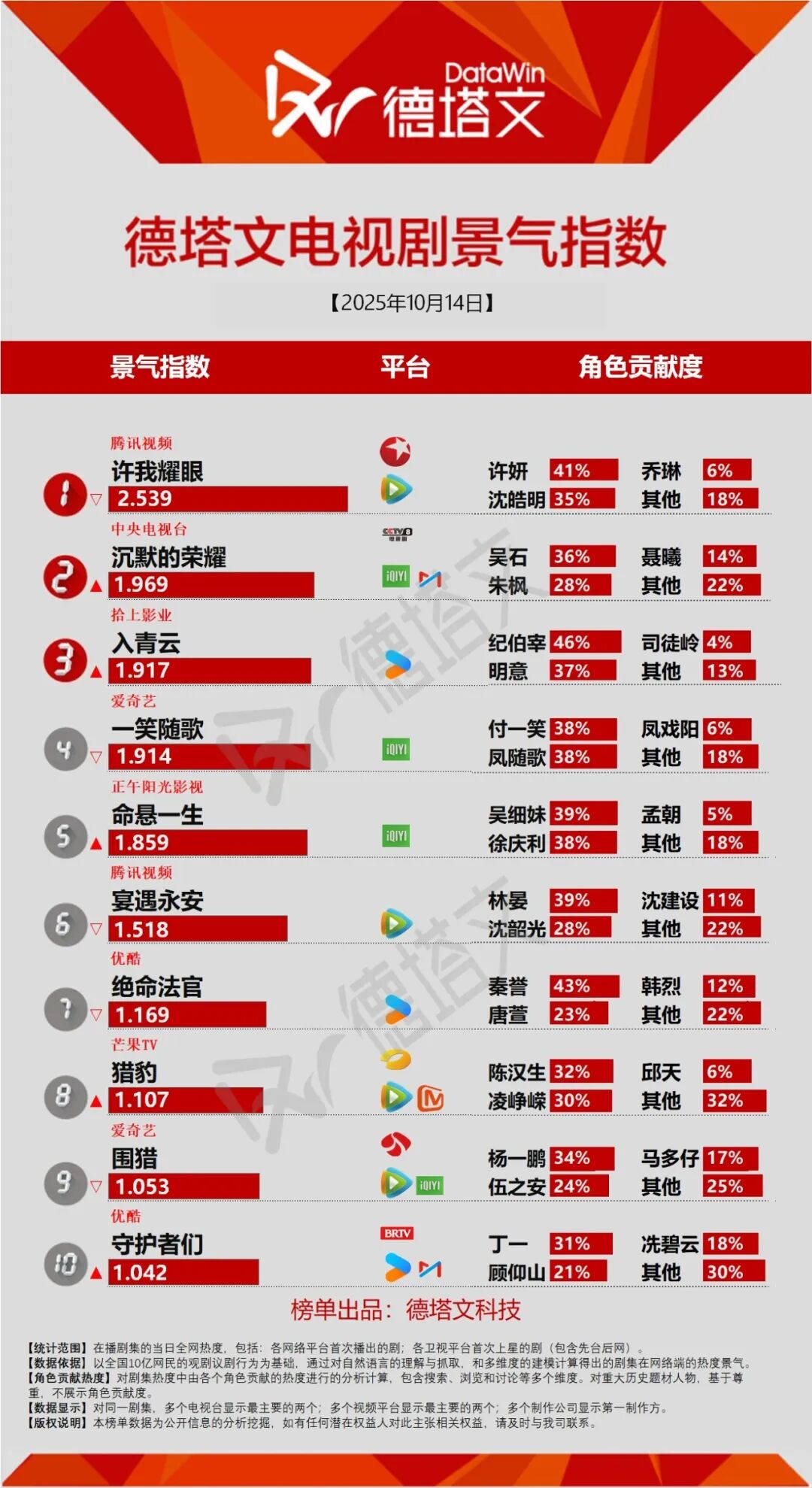 今日市场:《许我耀眼》稳坐榜首,腰部多剧混战