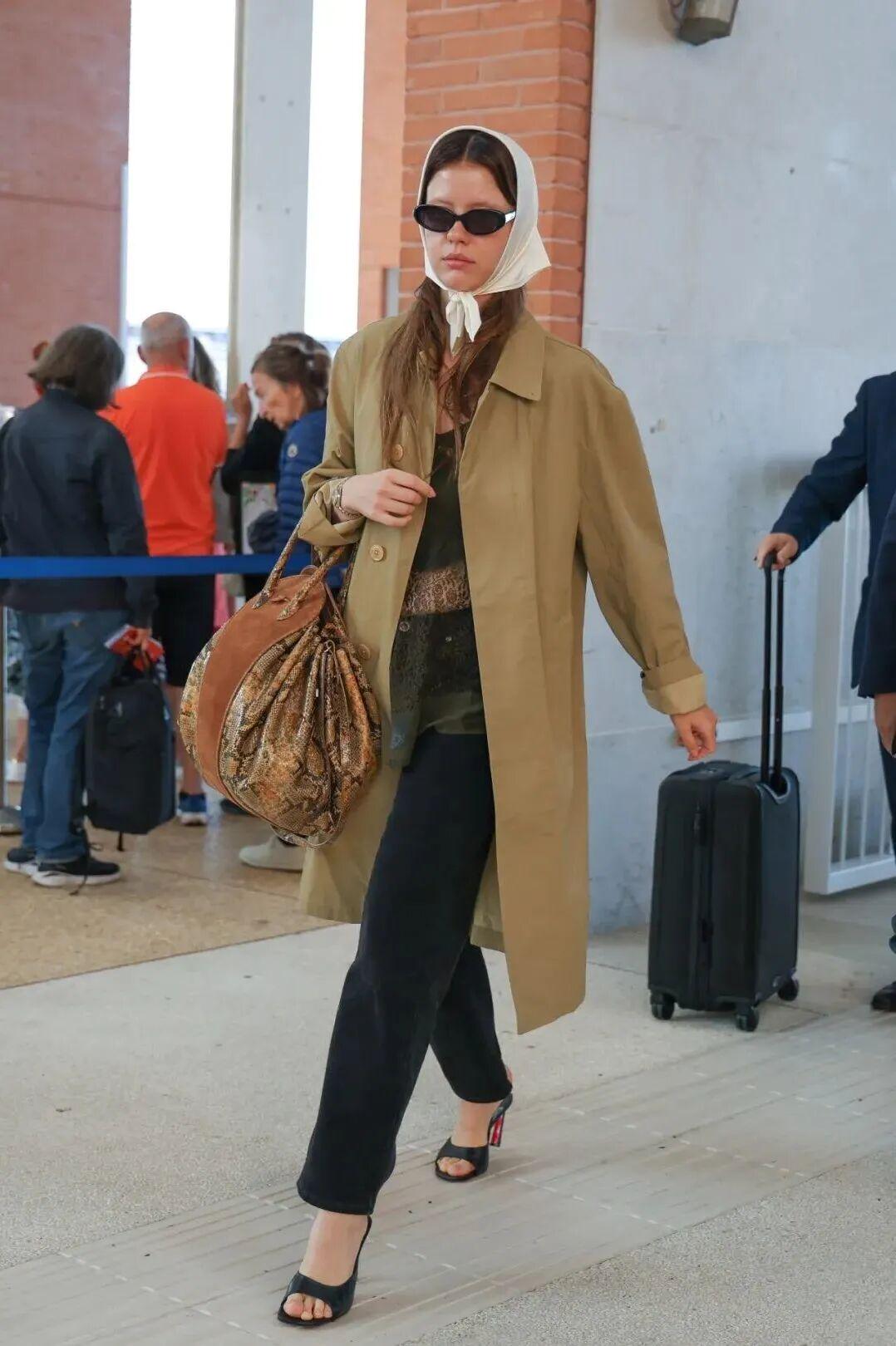 当风衣裹住脖颈、盖住半张脸,气场瞬间跃升。漏斗领风衣,就是这种力量的化身。像是Elsa Hosk、Rosie huntington whitley接连演绎,那份“武装到颈”的气势,像极了当代女性的温柔锋芒。
