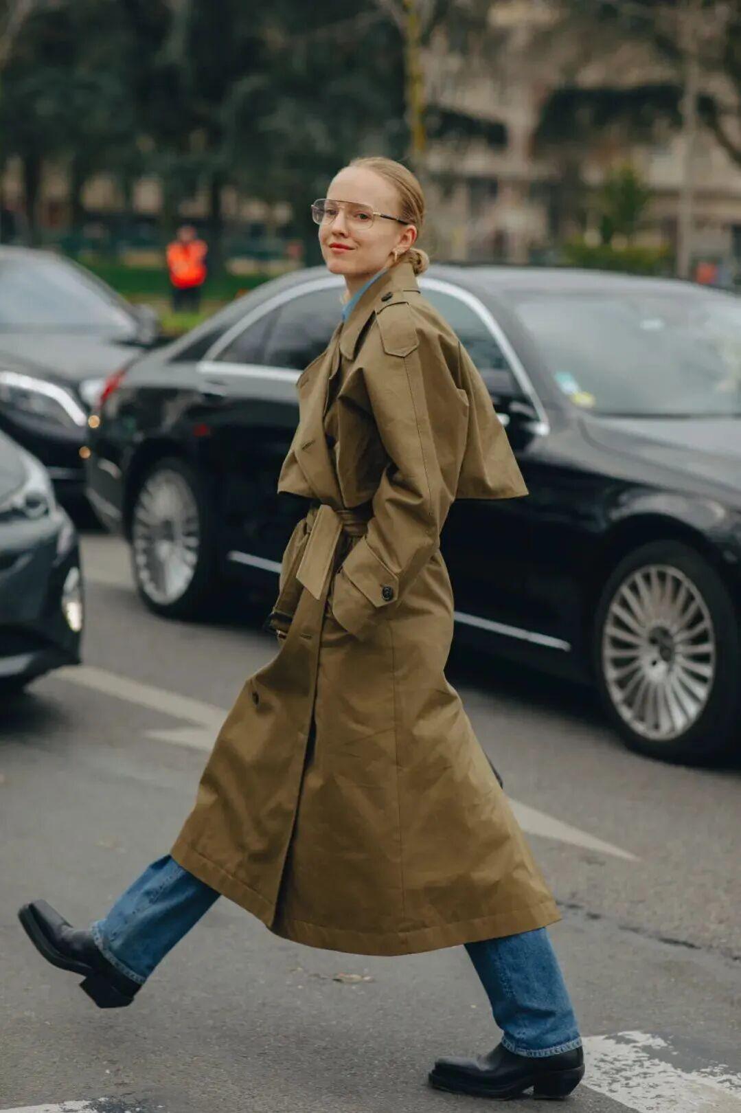 西服领的单排扣风衣往往带着一种浓郁的学院气质,搭配上金丝边眼镜便是当下流行的高智感。