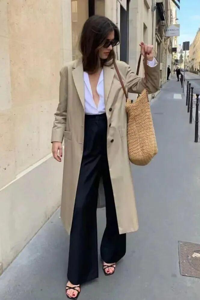 它既能在视觉上拉长比例,又让秋季穿搭更具层次感。无论搭配喇叭裤、百褶裙,还是下装失踪造型,都能在随意之间显出女性的张力与轻盈。一件短风衣,是“法式精致”与“美式利落”的平衡点。