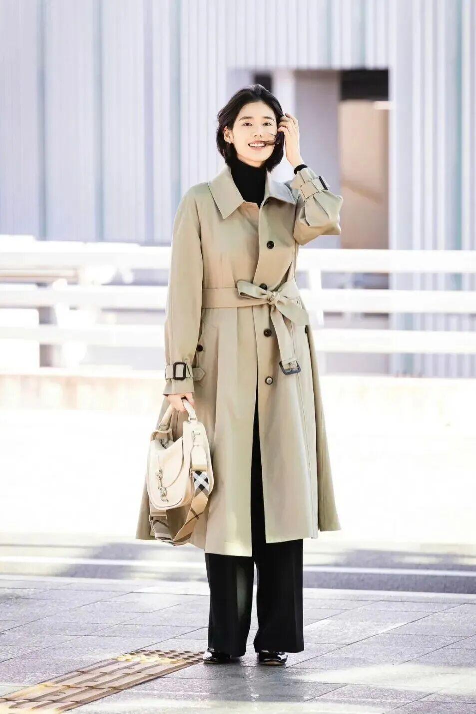 时髦精们都钟爱长款风衣,走在路上自带风,气场一米八。但是长度太长(脚踝处、盖过脚面)就很容易压个子,很容易穿出偷穿大人的衣服模样。对于大多是为普通身高的我们,最不挑人的是长度到膝盖左右的中长款,无论什么身高都能轻松驾驭。