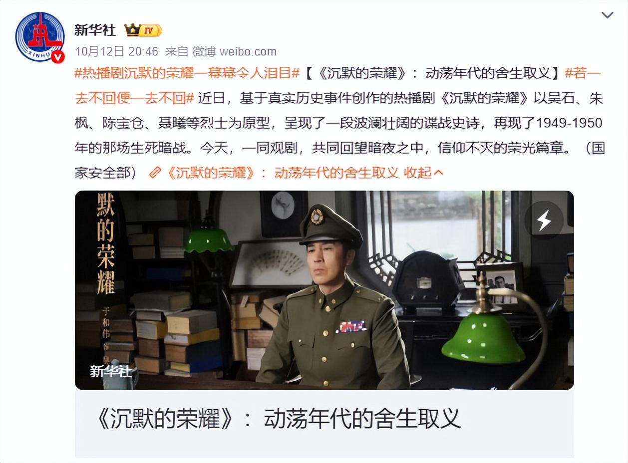 就连国台办发言人,都在发布会上引用了《沉默的荣耀》中吴石将军的一句台词,“若一去不回,便一去不回”。