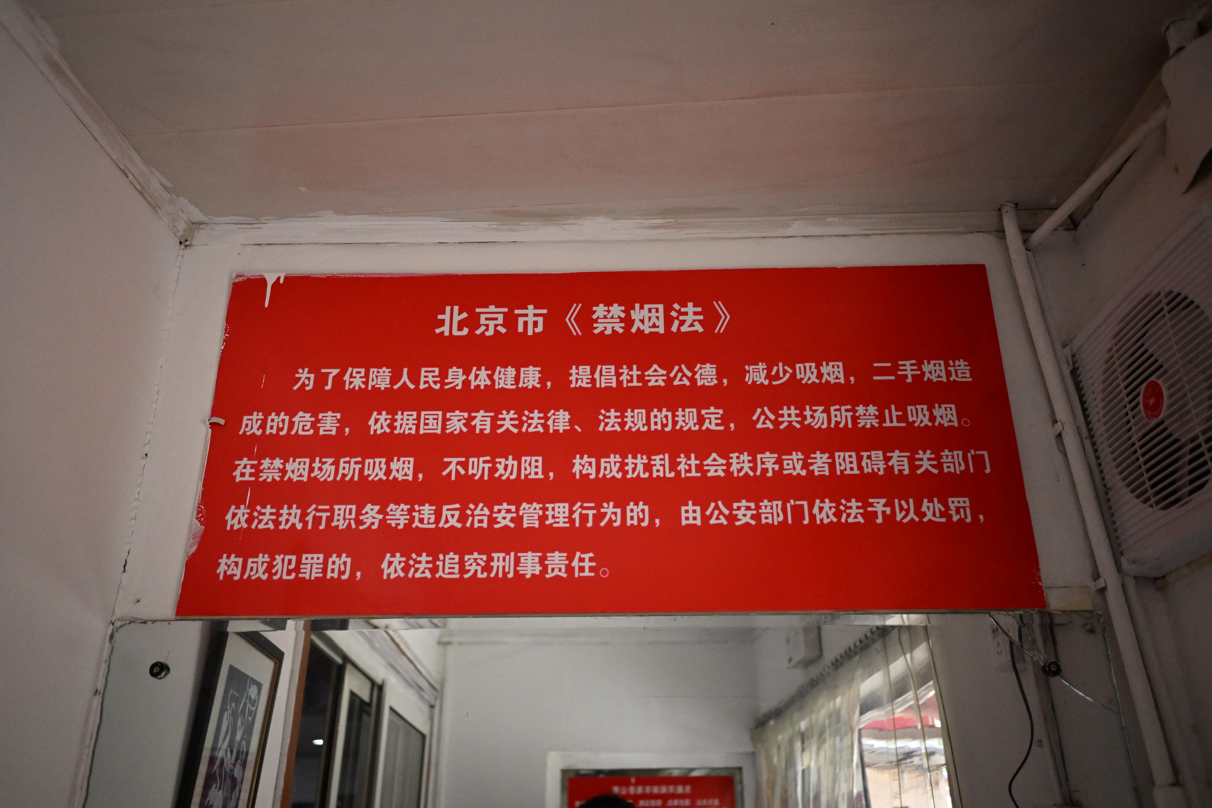 门外的阵仗只是预热。进门处先是洗手池,稍一抬头,“北京市《禁烟法》”就悬在脑门上,威慑力瞬间拉满。