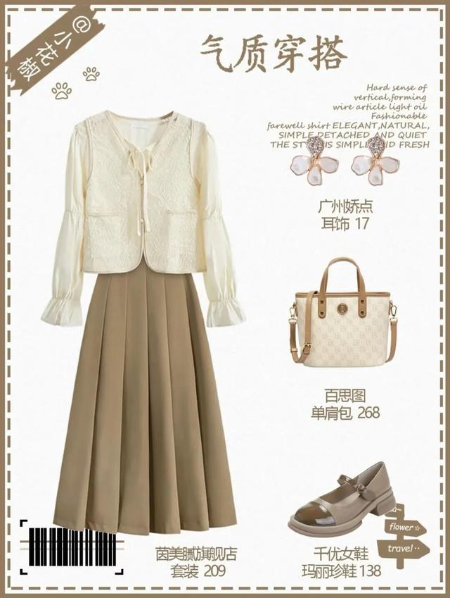 搭配卡其色百褶长裙,温柔气质又淑女,现在穿去秋游一定很美嘞!