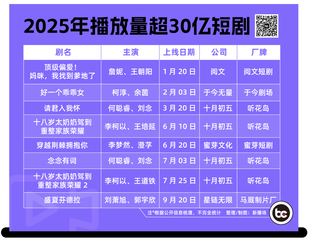 更为关键的是,这些爆款精品剧并非由某一家巨头垄断,而是站着一个又一个成熟的短剧厂牌——听花岛、于今无量、马厩制片厂等。