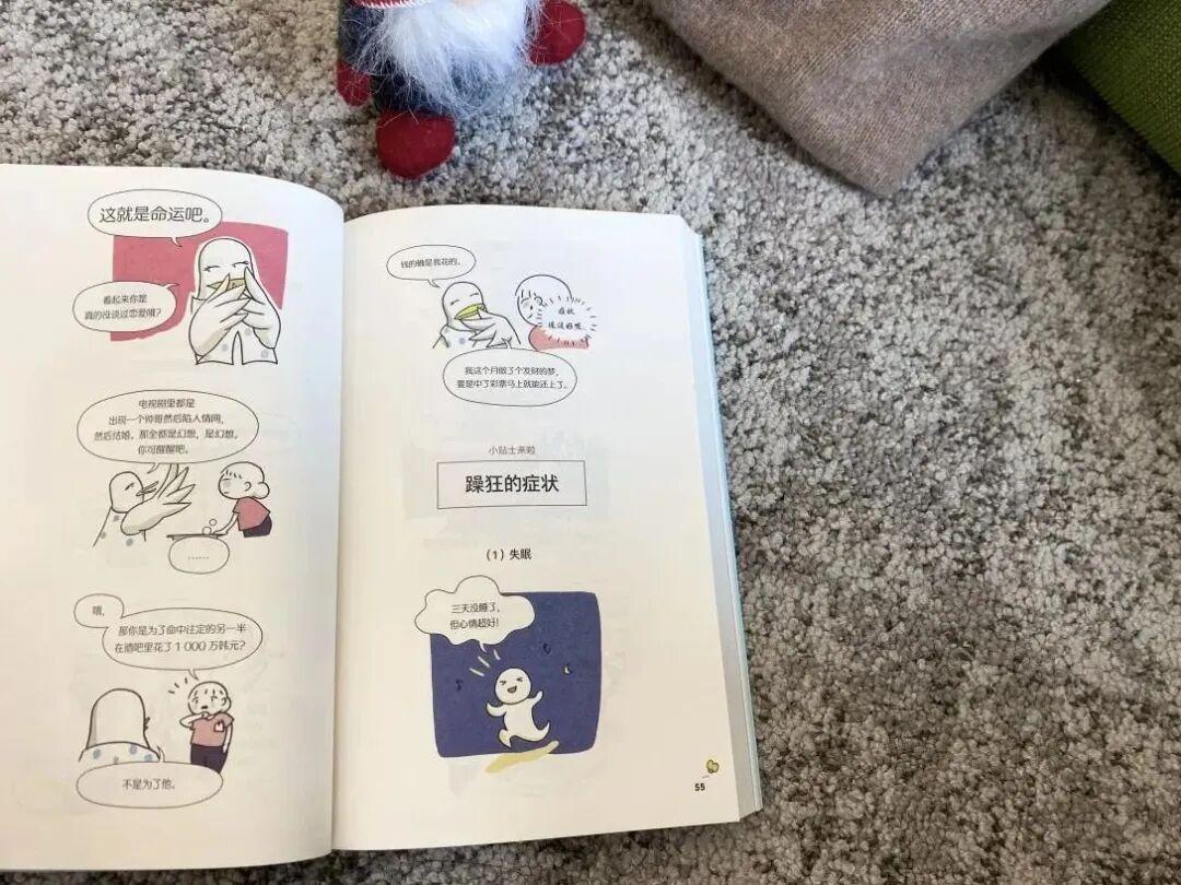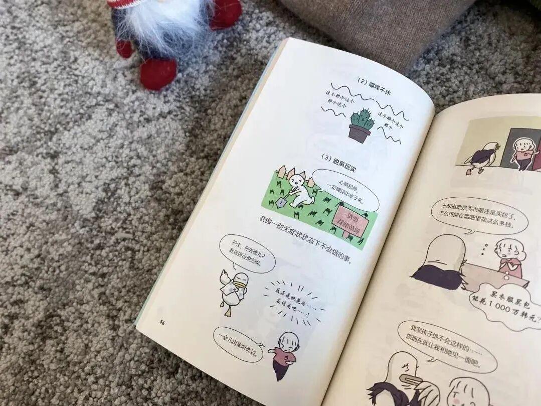 郑诗娜护士讲道,“90% 的躁狂病情会复发”,因而最终尽管鸭娜经历了漫长的治疗恢复了很多出院了,但是也需要按期复诊。书中多处也用漫画的形式对各种心理疾病的情况进行了趣味的科普。
