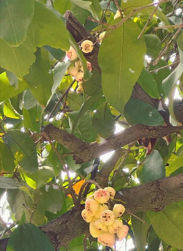 她反而发了一堆片场照片,有厦门吴公馆的草地,还有大家伙儿围着看莲雾变红的样子,气氛挺欢乐。