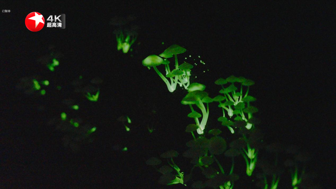 在海南热带雨林国家公园的拍摄首次清晰呈现了丛伞胶孔菌的荧光状态。这种白天看似不起眼的白色小菇,在夜间因荧光素与氧气发生反应,其菌盖与菌柄均会泛出幽幽绿光。先进的技术镜头让这一“自然秘语”得以清晰显现。