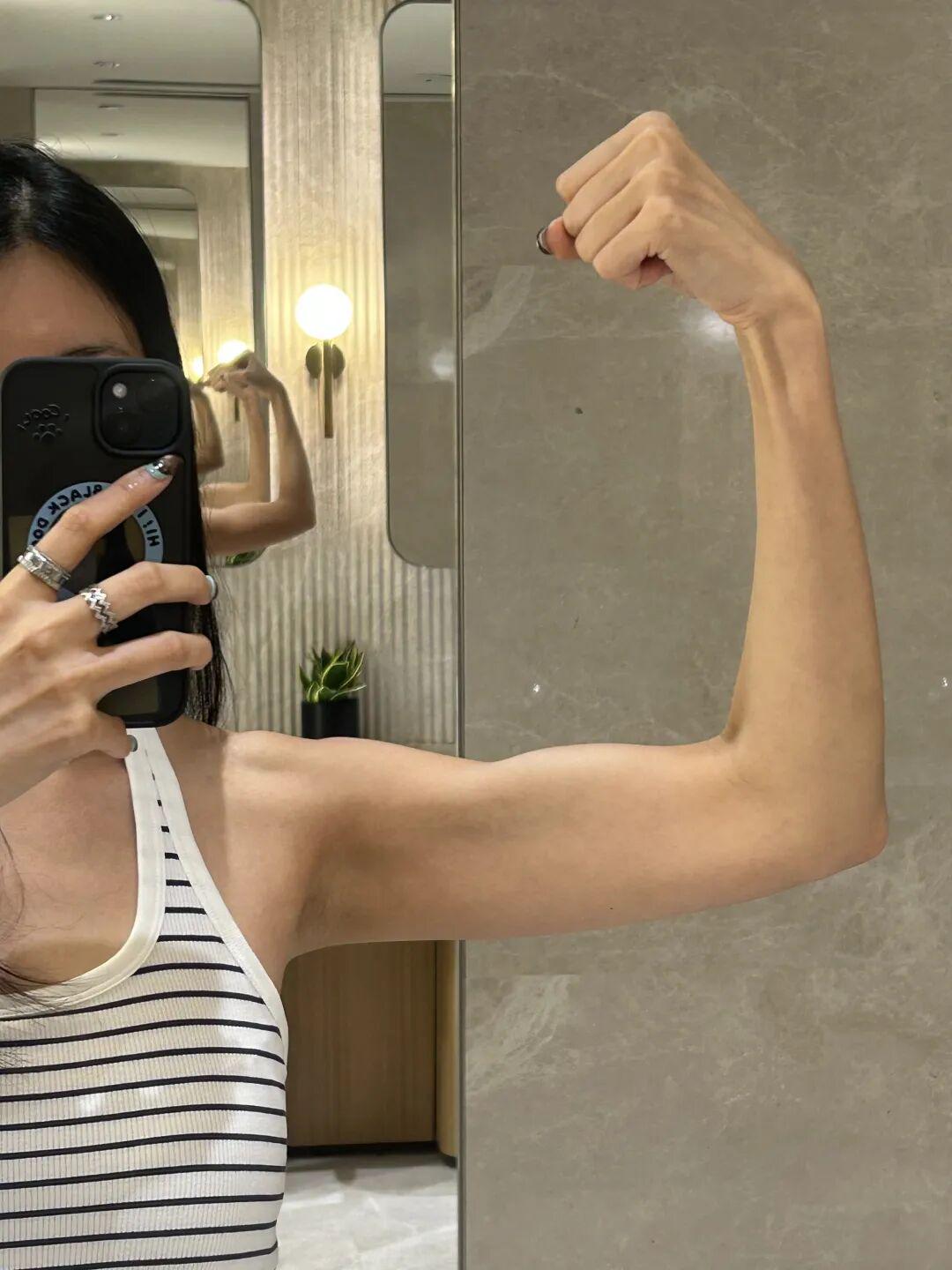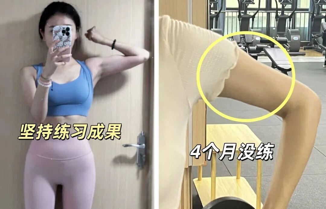 对比一看就知道,练不练是有差距的!不练的时候拜拜肉就像雨后春笋一样都“冒出来”了!▼