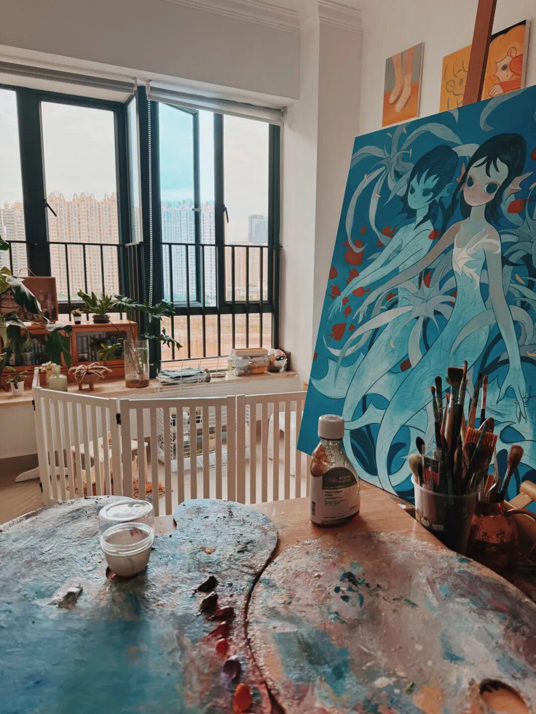 我把它放在了画室里,可以一边画画,一边听着它在旁边吃东西的声音,就觉得有个陪伴。
