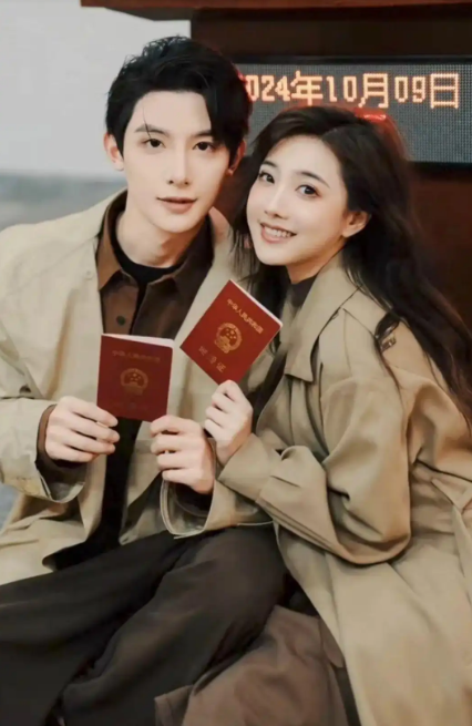 这一对是去年10月9日领的证,他俩拍戏都不是公费恋爱了,是纯纯的挣钱养家啊。