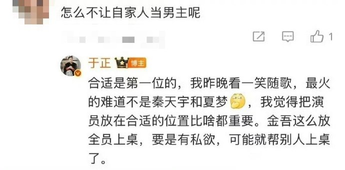 最近《一笑随歌》播完了,虽然热度不是特别高,但讨论和关注还是有的,有的夸男女主意外适配,夸女主符合原著角色,还有夸配角有出彩亮点的。这事儿就被于正揪出来说,他回答评论区网友的问题,说整个剧最火的是俩配角,顺便最后又宣传了自己后面拿来捧赵晴的新剧。