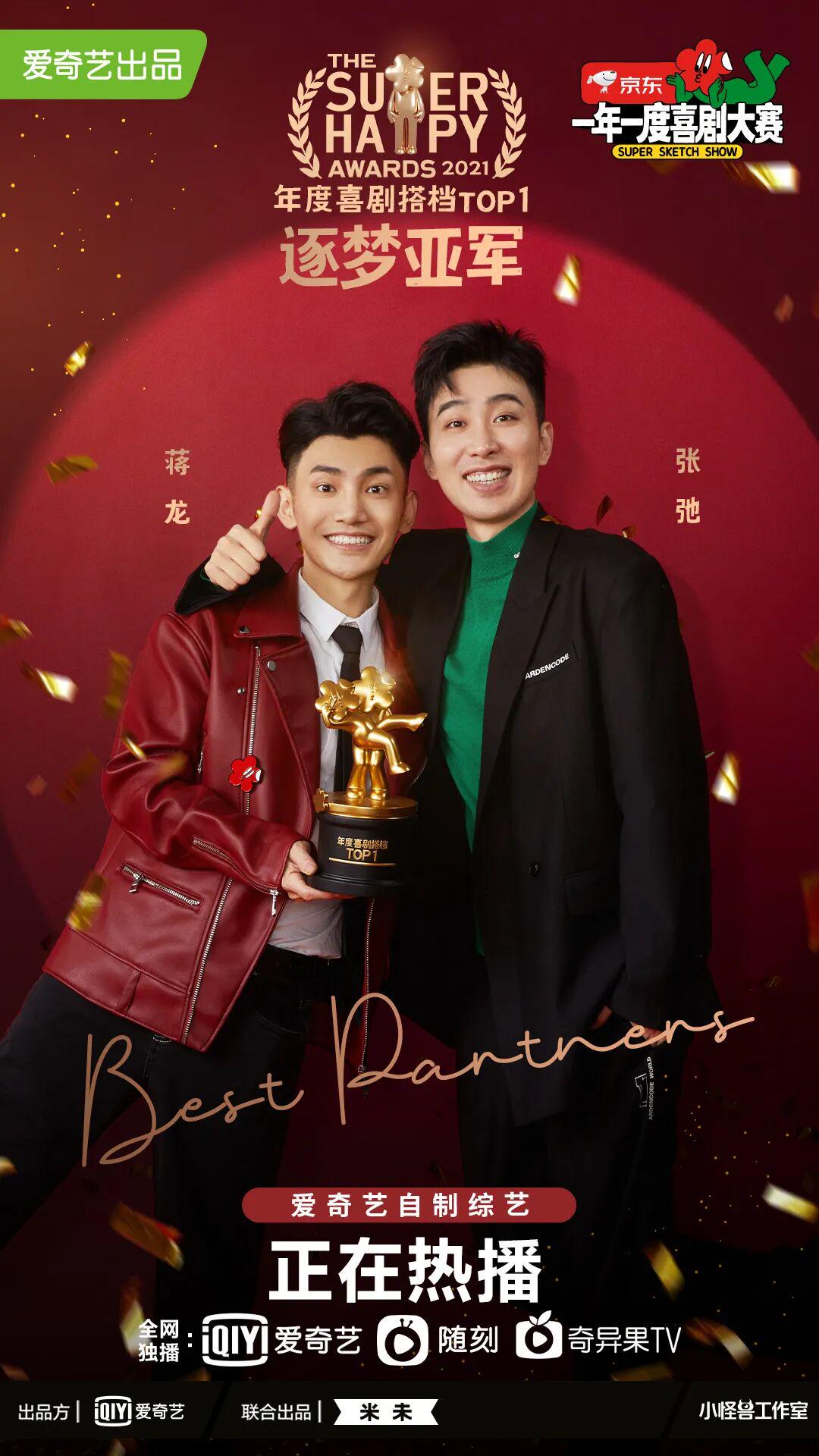 4年前,蒋龙和张弛是《一年一度喜剧大赛》(以下简称《一喜》)上被“硬凑起来”的组合,却凭借默契的表演一路过关斩将,获得年度喜剧搭档第一名。他们的作品《这个杀手不大冷》《最后一课》《台下十年功》和《悟空》被观众称为“初心四部曲”,“逐梦亚军”组合从此成为喜剧舞台上的“白月光”。