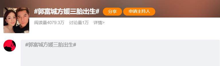 不过,在港媒报道1个多小时后,郭富城激动发文,宣告了三胎已出生的喜讯。