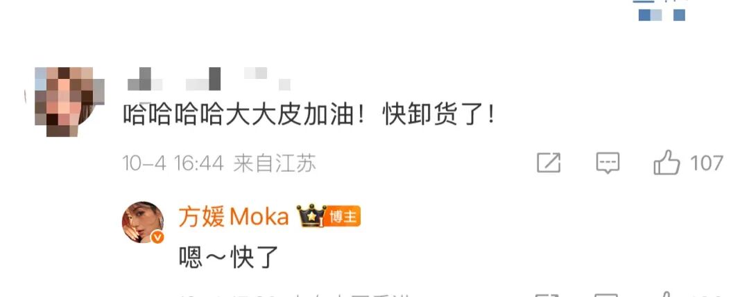 对于此,方媛回应称“快了”。