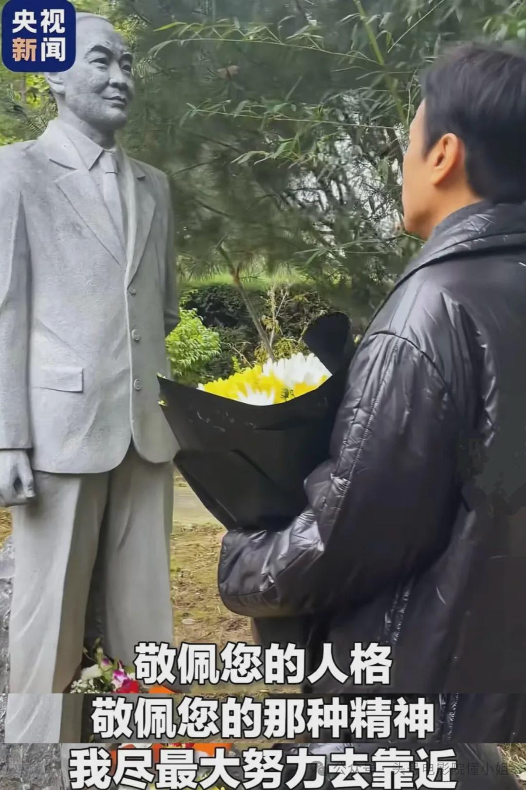 在《沉默的荣耀》大结局之际,于和伟前往吴石将军和夫人的墓地献花。