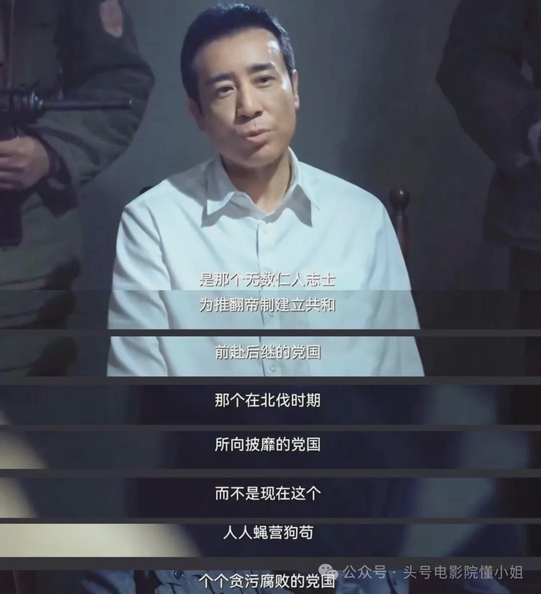 随后,他说出了那段全剧封神的独白:“我没有背叛党国,我忠诚于中山先生天下为公的党国。”