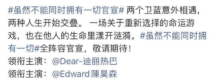 最近热巴新剧官宣了,接下来要跟台湾艺人陈昊森(签约壹心娱乐)合作,这剧他俩都是领衔主演,不过她是一番,他是二番,但就这样也让不少网友觉得男星咖位不匹配,吐槽女方资源降级后面合作的对象咖位越来越小了,另一边粉丝则骂公司不做人,拿她当摇钱树,公司不给好资源罢了,还光让热巴带新人带新导演,蹭她热度。