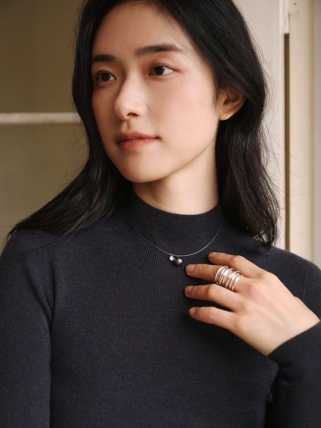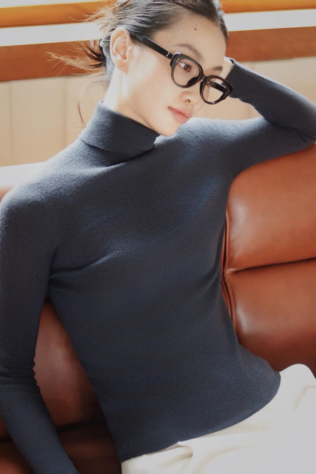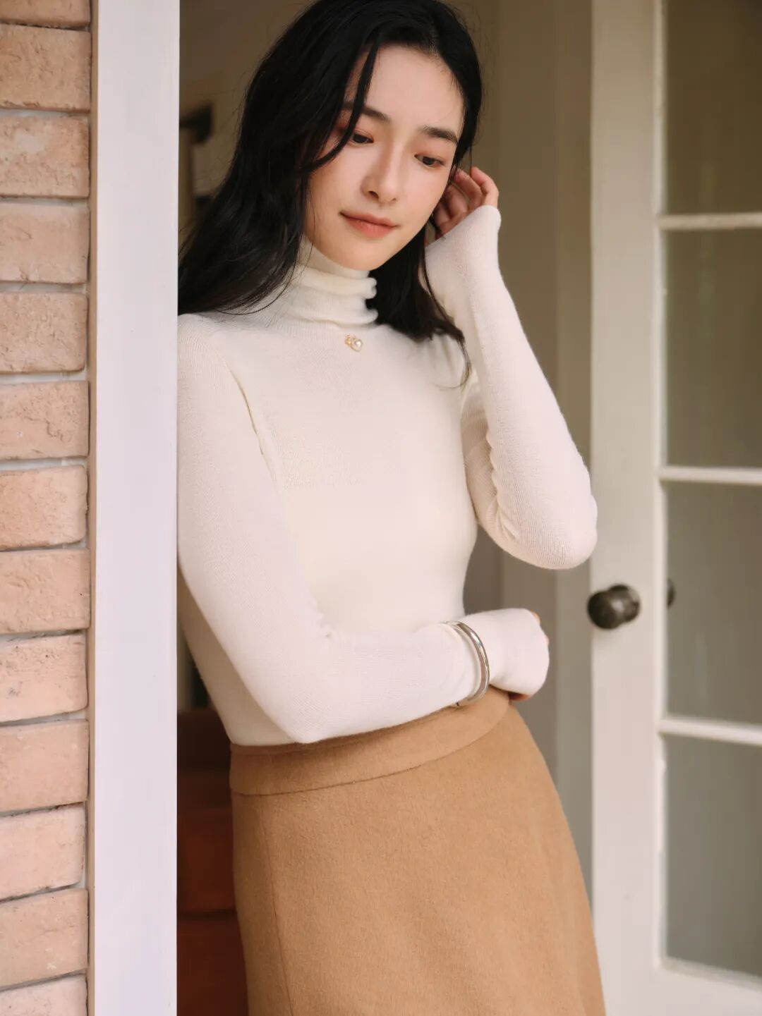 半高领呢,刚好能包裹住脖子的一小部分,完全不会埋没脖子,适合短脖星人,能小心机地勾勒天鹅颈。 ▼