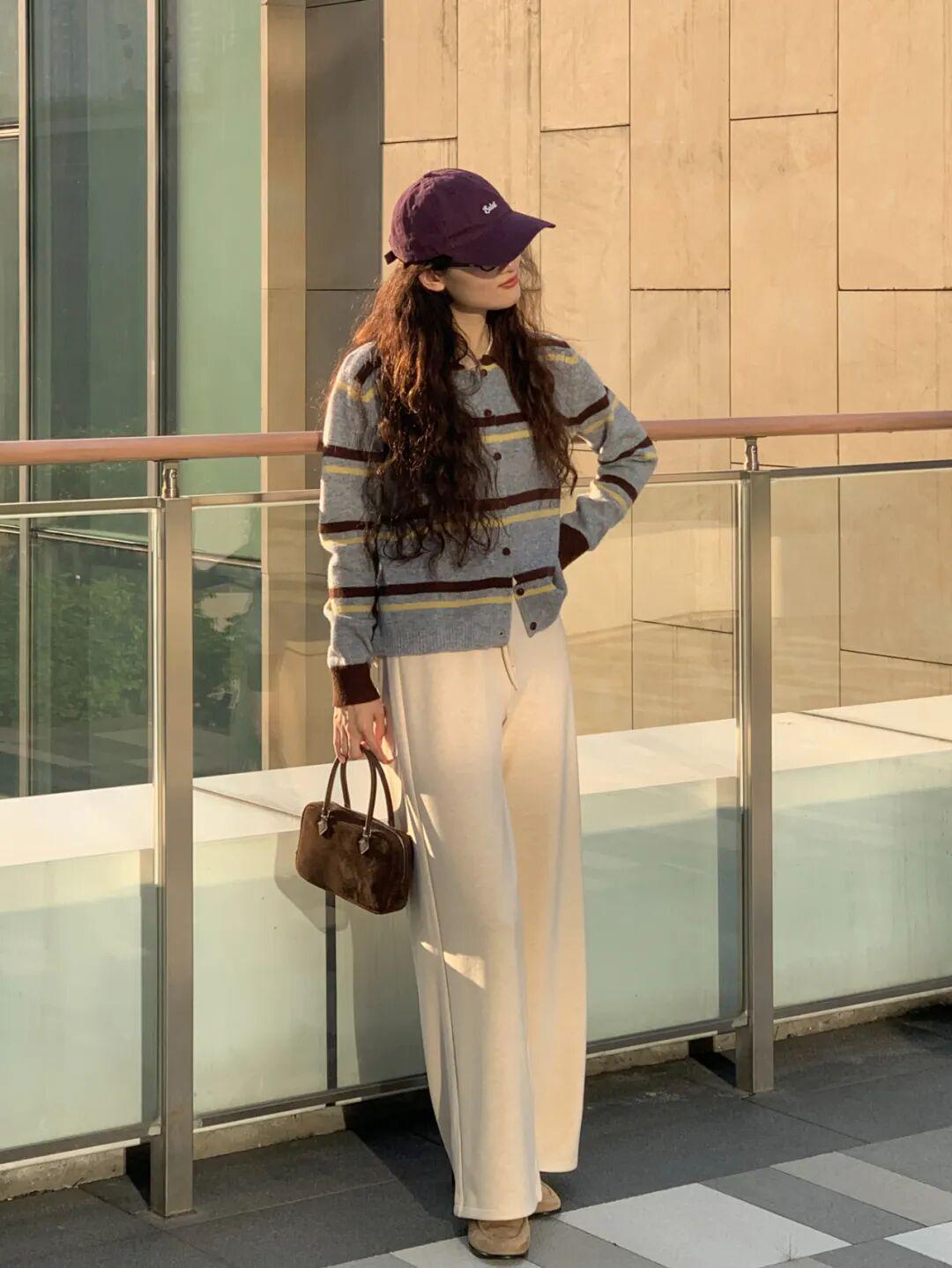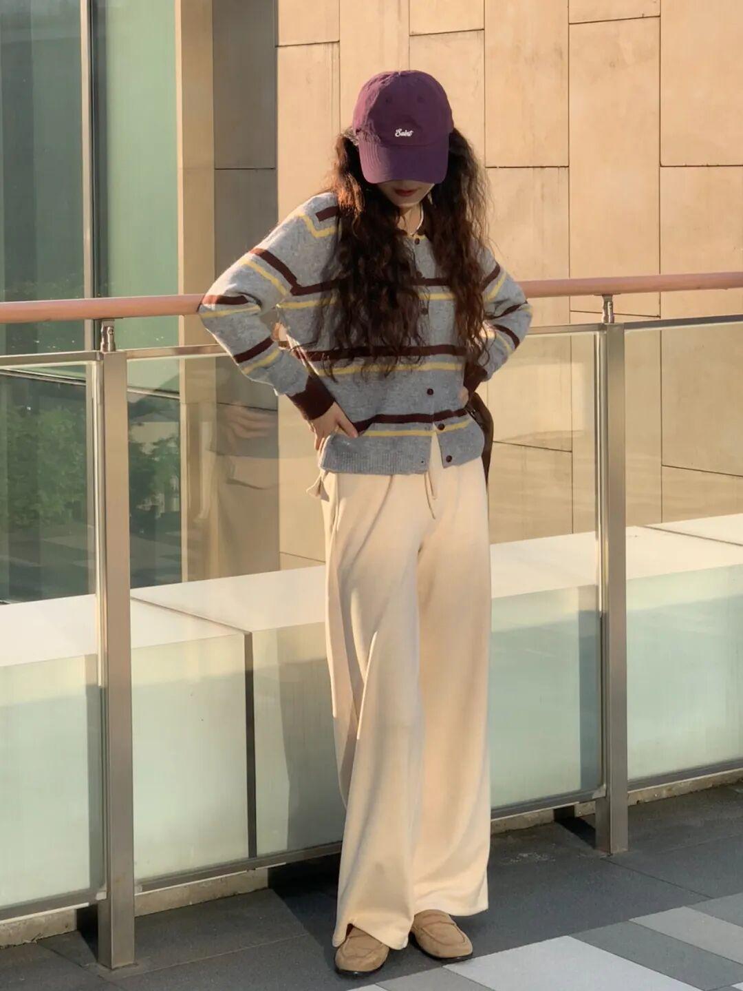 喏,先给你们看看都有啥——经典耐穿的条纹开衫、 实穿不挑场合的打底衫、还有百搭保暖的秋冬神裤! ▼