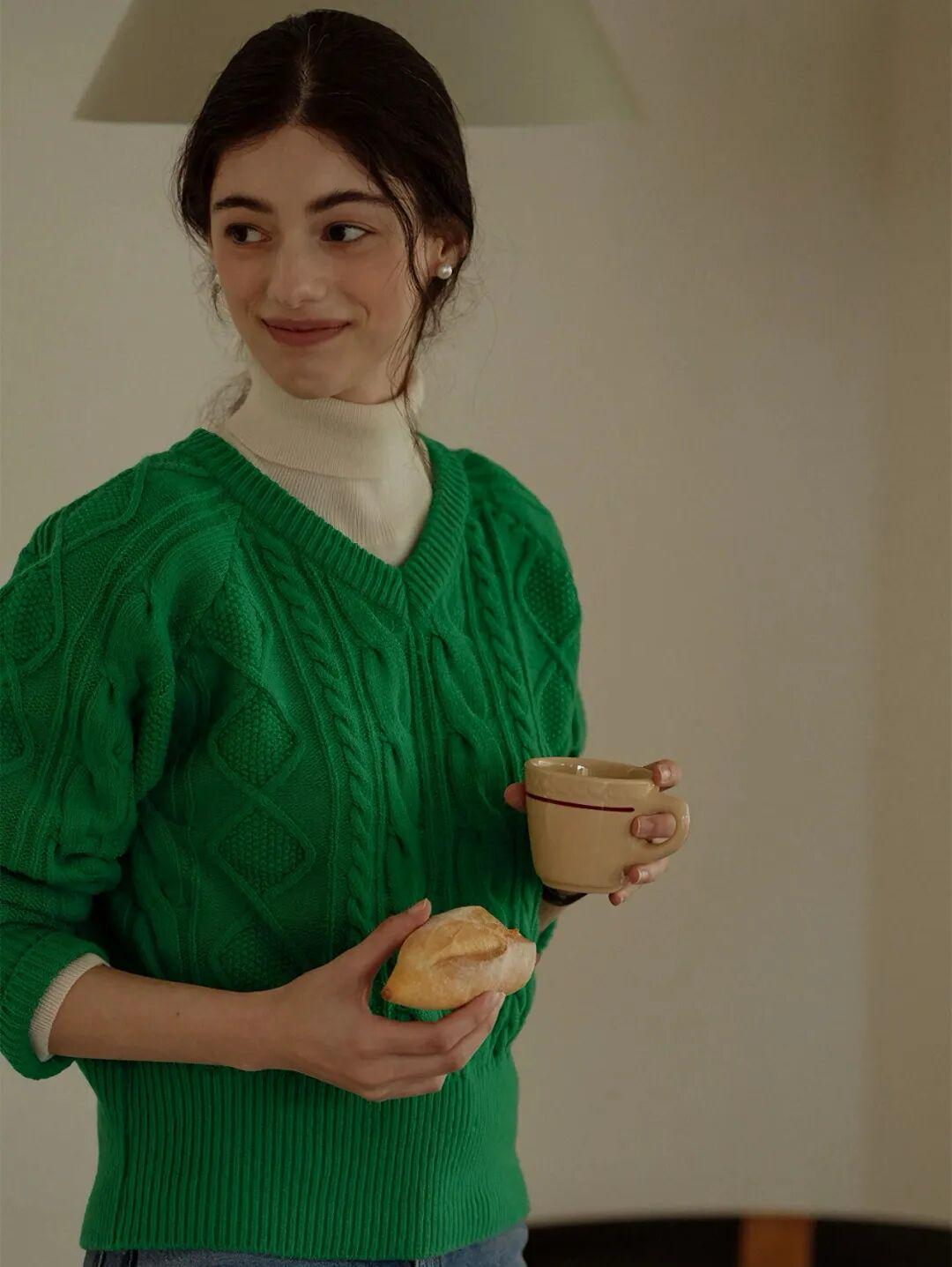 再搭配12针平针织法,整件开衫的触感更加细腻、也拥有了难得的垂坠感,所以哪怕贴身穿都不会扎、视觉上也不显臃肿。 ▼