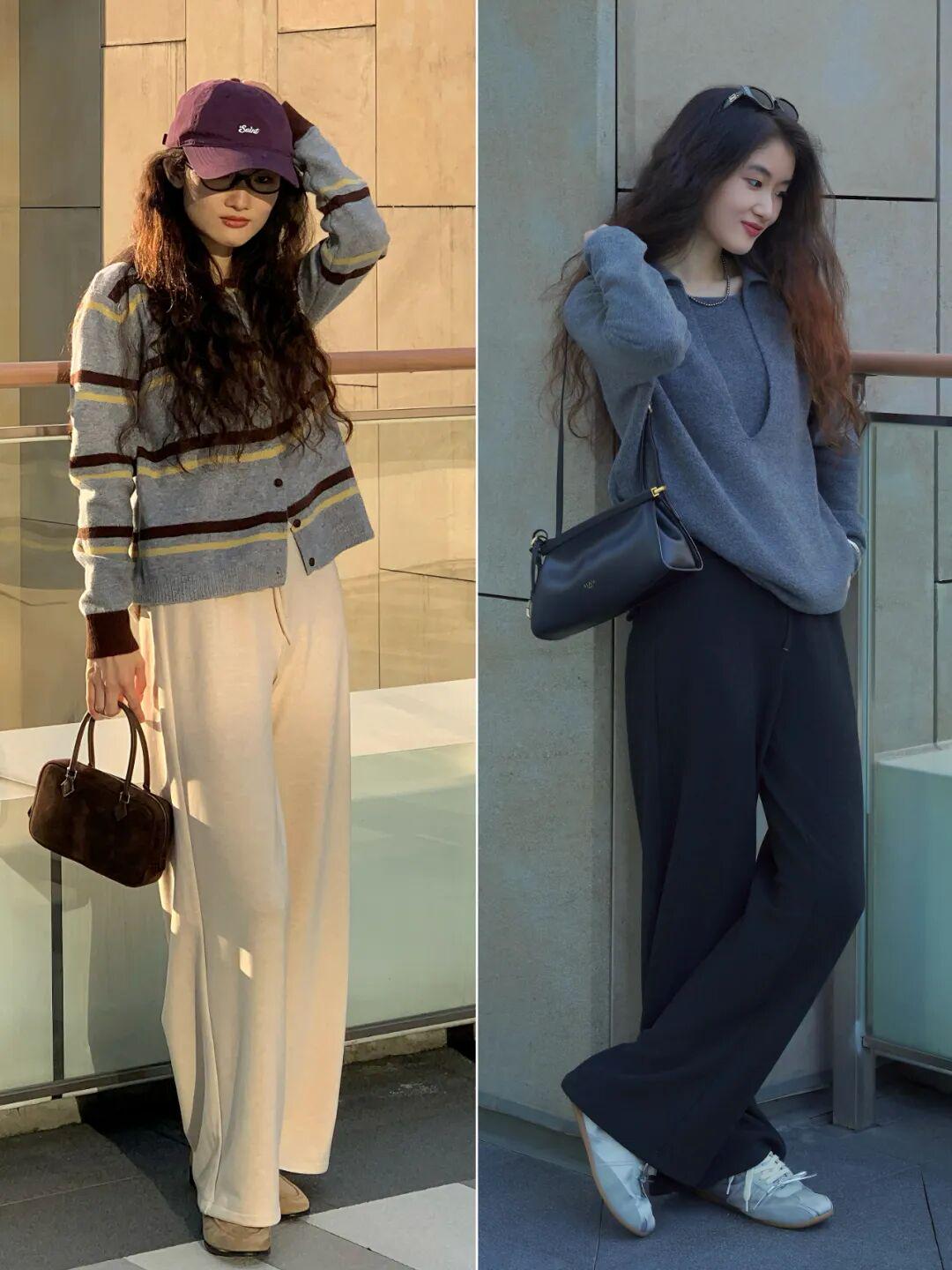 秋冬的裤子,垂坠感很重要,如果蓬蓬的就容易显壮、拖比例。