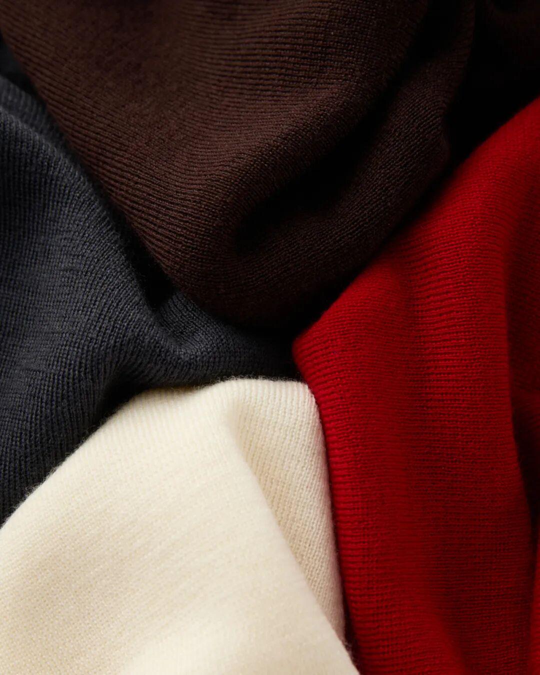 羊毛本身的保暖性很好,吸湿又透气。因为我们用的是纤维更长的高支数羊毛,所以也大大提升了它的耐磨性,没那么容易起球变形。