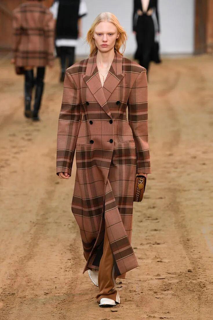 而今年的格纹大衣更“松弛”了:格子变小,颜色更浅,排布更随性,肩型也更自然。