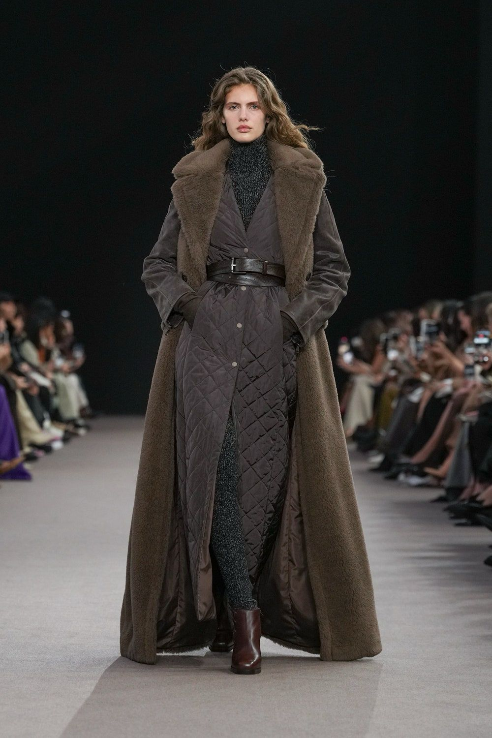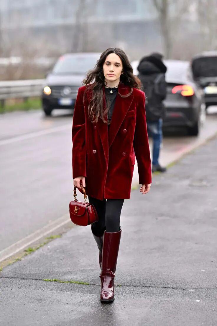 今年的天鹅绒大衣不再厚重,剪裁更轻,线条更顺滑。