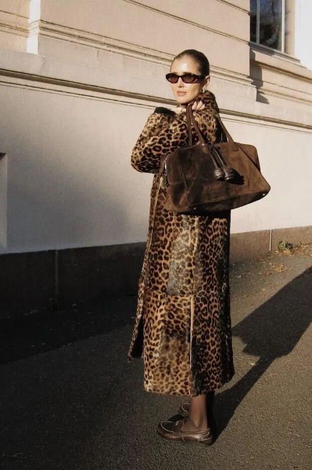 豹纹不再是派对符号,蛇纹也不再冷艳,它们被柔化成低饱和的奶驼、灰棕、雾金。这种“野性”反而更有味道。