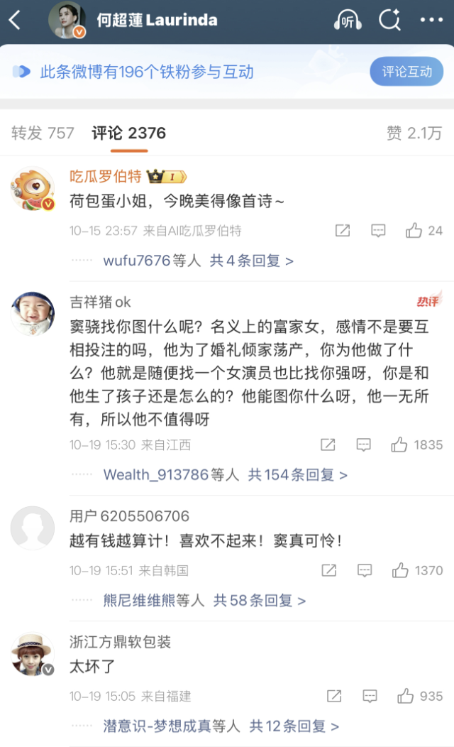 何超莲评论区全面沦陷。