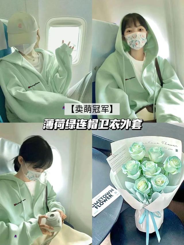 姐妹,这件卖萌冠军薄荷绿连帽卫衣也太戳人了!清清爽爽的颜色超显白,单穿叠穿都好看,穿上直接减龄好几岁!