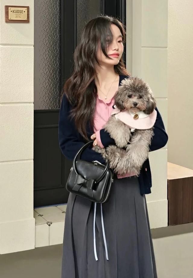 显白心机配色暴击!藏青拼低饱和粉,黄皮穿瞬间提亮肤色,微阔版型+微收腰线,慵懒藏肉却暗戳戳显瘦,知识分子氛围感拿捏死死~