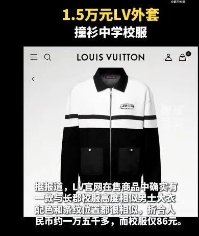 10月22日,湖南长沙一中学校友发帖称,继前几天被拉夫劳伦版雅礼校服刷屏之后,终于等到了LV外套和校服的撞衫。据报道,LV官网在售商品中确实有一款与该中学校服高度相似的男士大衣,配色和条纹位置都很相似,折合人民币约15000多元,而该校的校服在电商平台售价仅为86元。