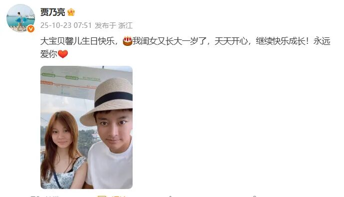 贾乃亮发博祝甜馨生日快乐,“大宝贝馨儿生日快乐,我闺女又长大一岁了,天天开心,继续快乐成长!永远爱你”。