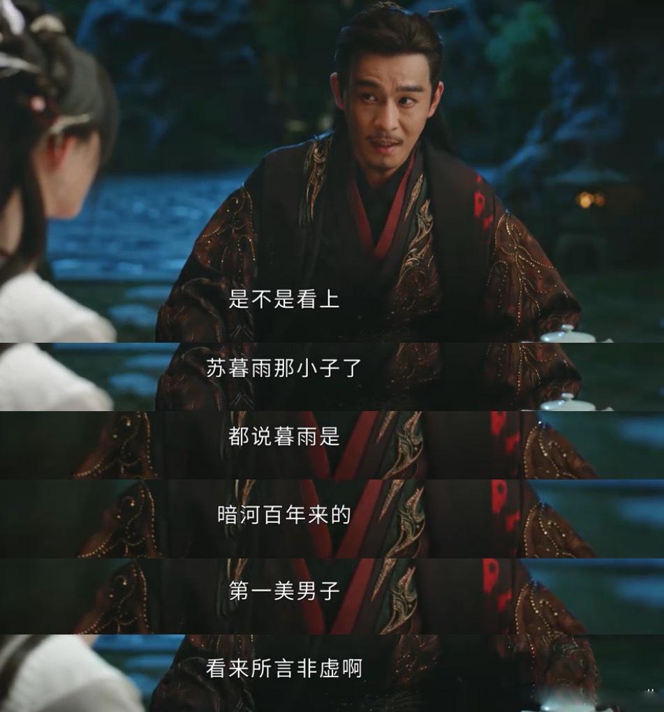 而苏暮雨的人设不光有能力有担当,颜值也是杠杠的,剧中借苏喆之口指出他是“暗河百年来的第一美男子”。