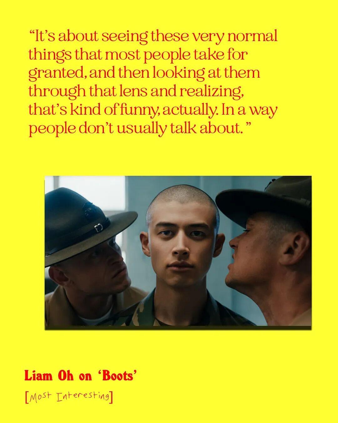 而剧中,韩裔美籍新人男演员 利亚姆·吴 Liam Oh 因饰演随男主角一同入伍的好友,在遍是白男黑哥的迷彩服丛中,成为那亮眼的一点红,演技和颜值,备受肯定,被观众视为下一个在好莱坞有望大红大紫的亚裔男星……