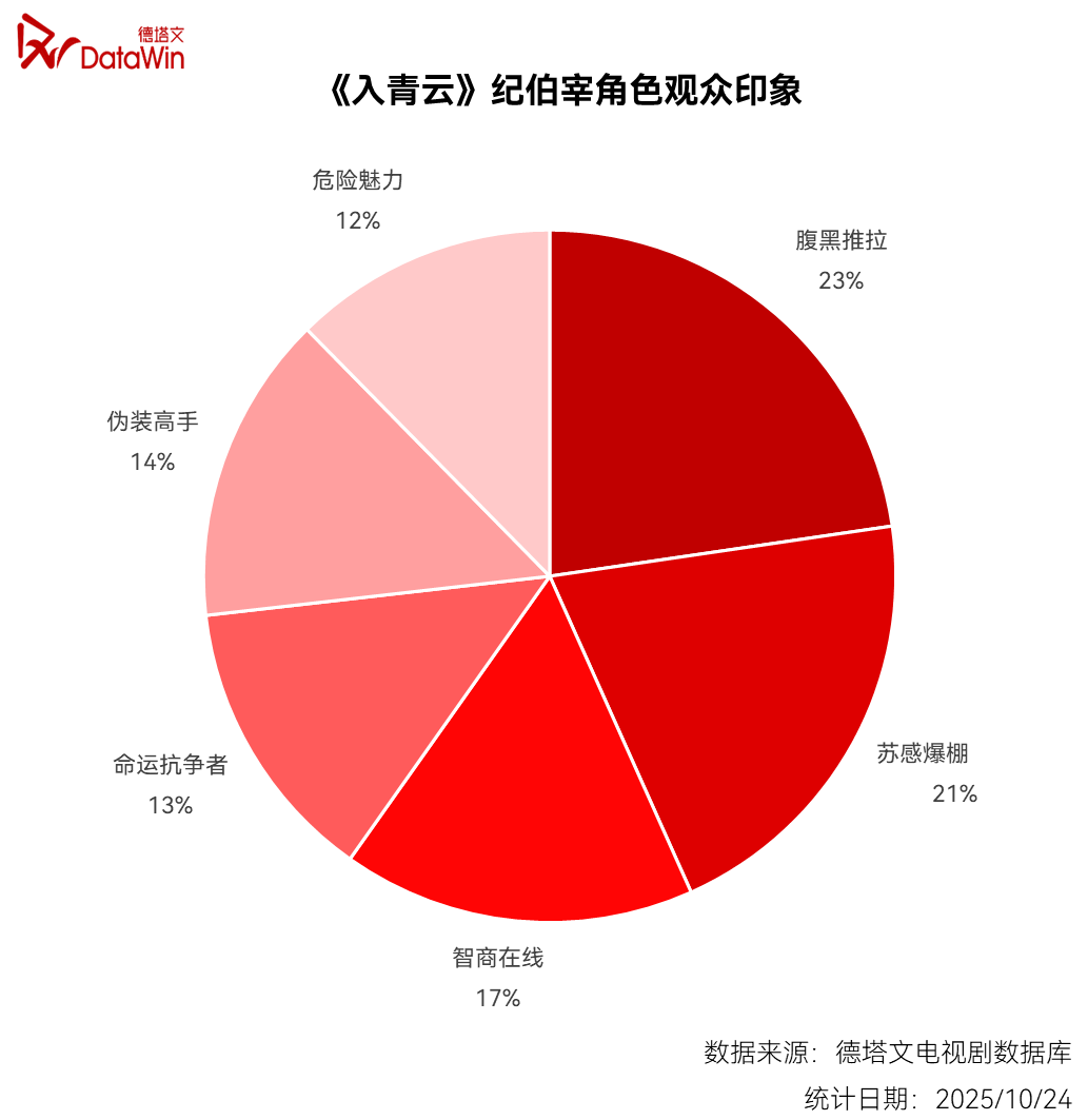 因此,在角色观众印象中,“腹黑推拉”“苏感爆棚”“智商在线”“伪装高手”“命运抗争者”“危险魅力”等成为关键词,侧面佐证了侯明昊对这个复杂角色的理解度、把控力与观众较高的认可度。