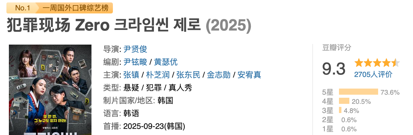 总的来说,《犯罪现场Zero》又一次用实力证明:好的推理综艺,从来不需要靠噱头取胜,扎实的剧本与真诚的制作,才是永恒的“高分密码”,喜欢这种类型综艺的朋友可以追起来啦~