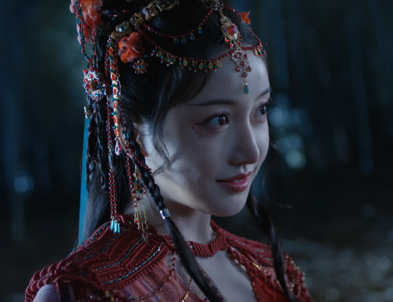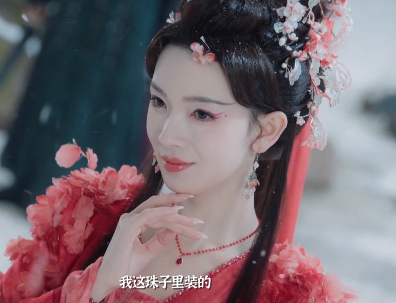 剧中红姑娘一身赤色,明眸含笑,一举一动流露着俗世红尘的气息。