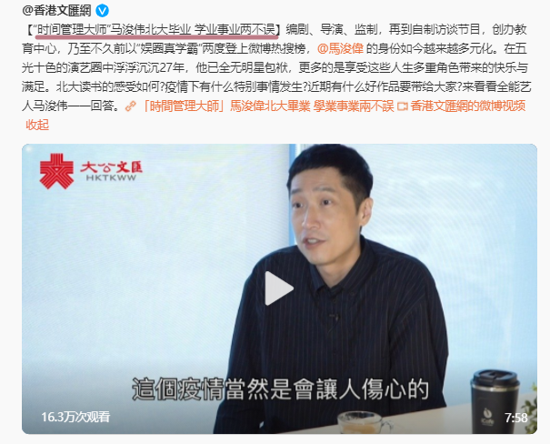 半息影的马浚伟,创立了自己的咖啡品牌,47 岁考上了北大研究生,后又香港浸会大学中医药学院。