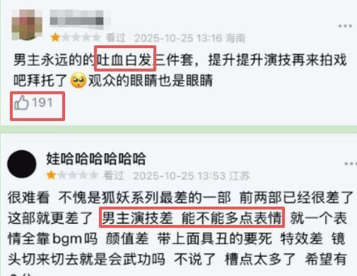 7. 不过前两部播出后反响平平,舆论焦点大多集中在杨幂与刘诗诗的表现上,普遍批评其演技生硬、表情呆滞,加之磨皮过度导致肤色失真泛白,严重影响观感。