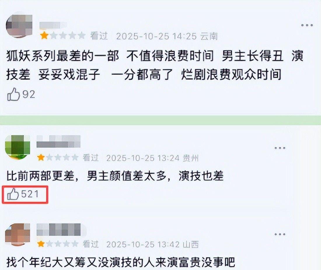 60. 网友尖锐评论:“为何选用一位年纪偏大、外形普通、又无演技支撑的演员来担纲男主?”
