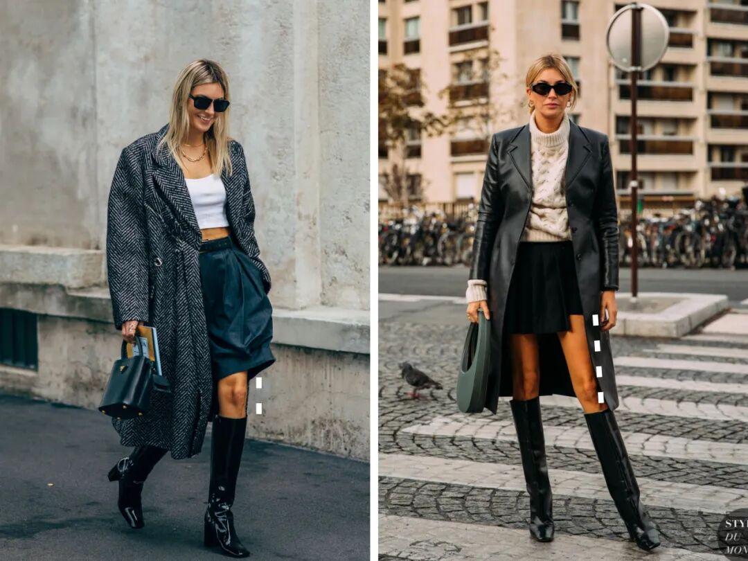 比如短裙+高筒靴+大衣的组合,只要大腿肉不那么夸张,一般人穿都很显高显瘦。