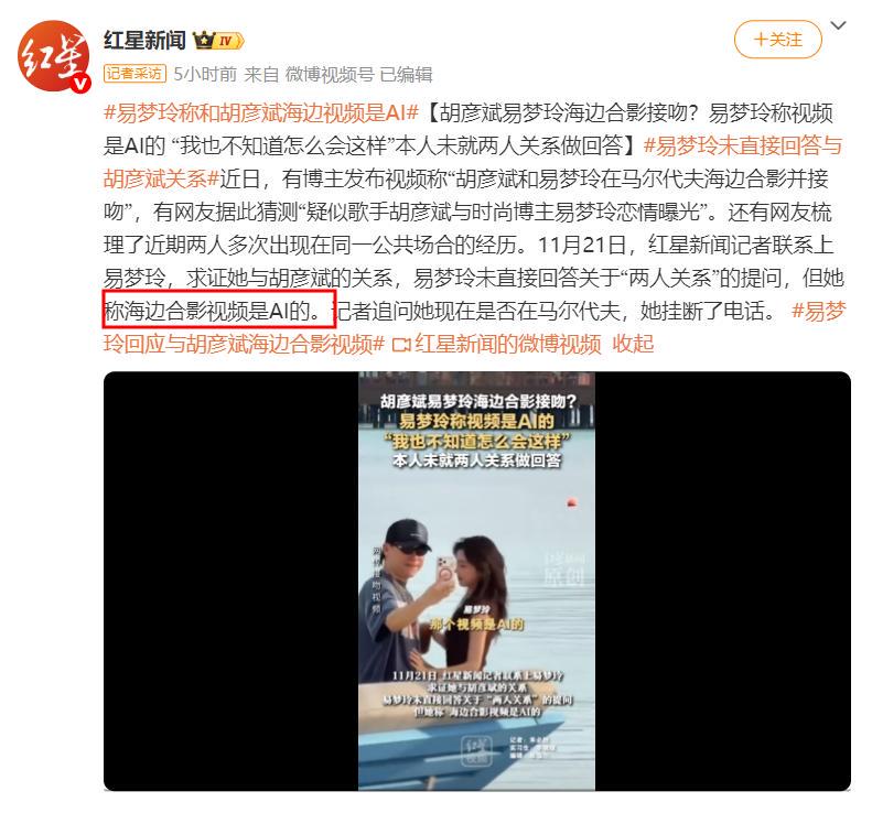 易梦玲这一回应不得了,“易梦玲和胡彦斌海边视频是AI”的词条立马登上了热搜第一,引发网友热议。