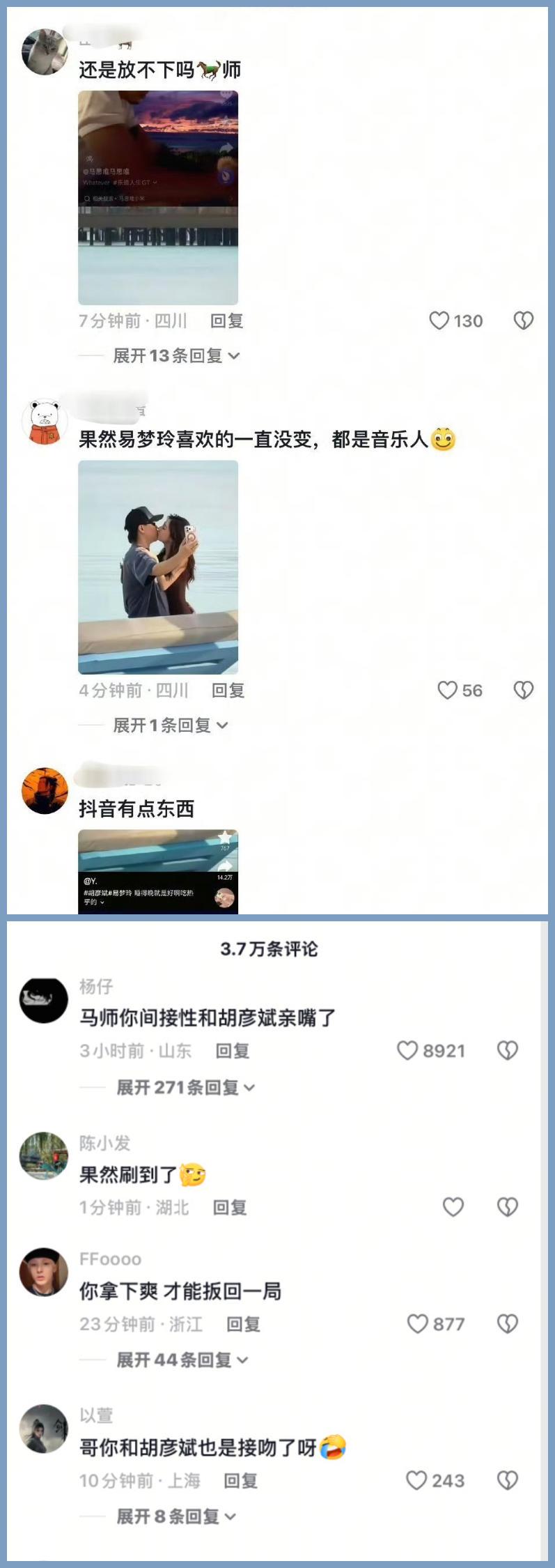 马思唯的评论区已经被易梦玲和胡彦斌刷屏。
