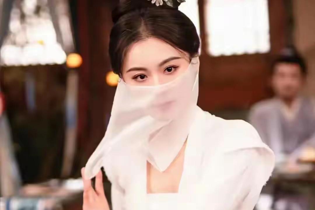 出场之时,奴娇则是盲眼歌伎的身份。这是一个身穿白衣、白纱蒙面、抱琵琶、背长剑的女子,柔美与凌厉并存。